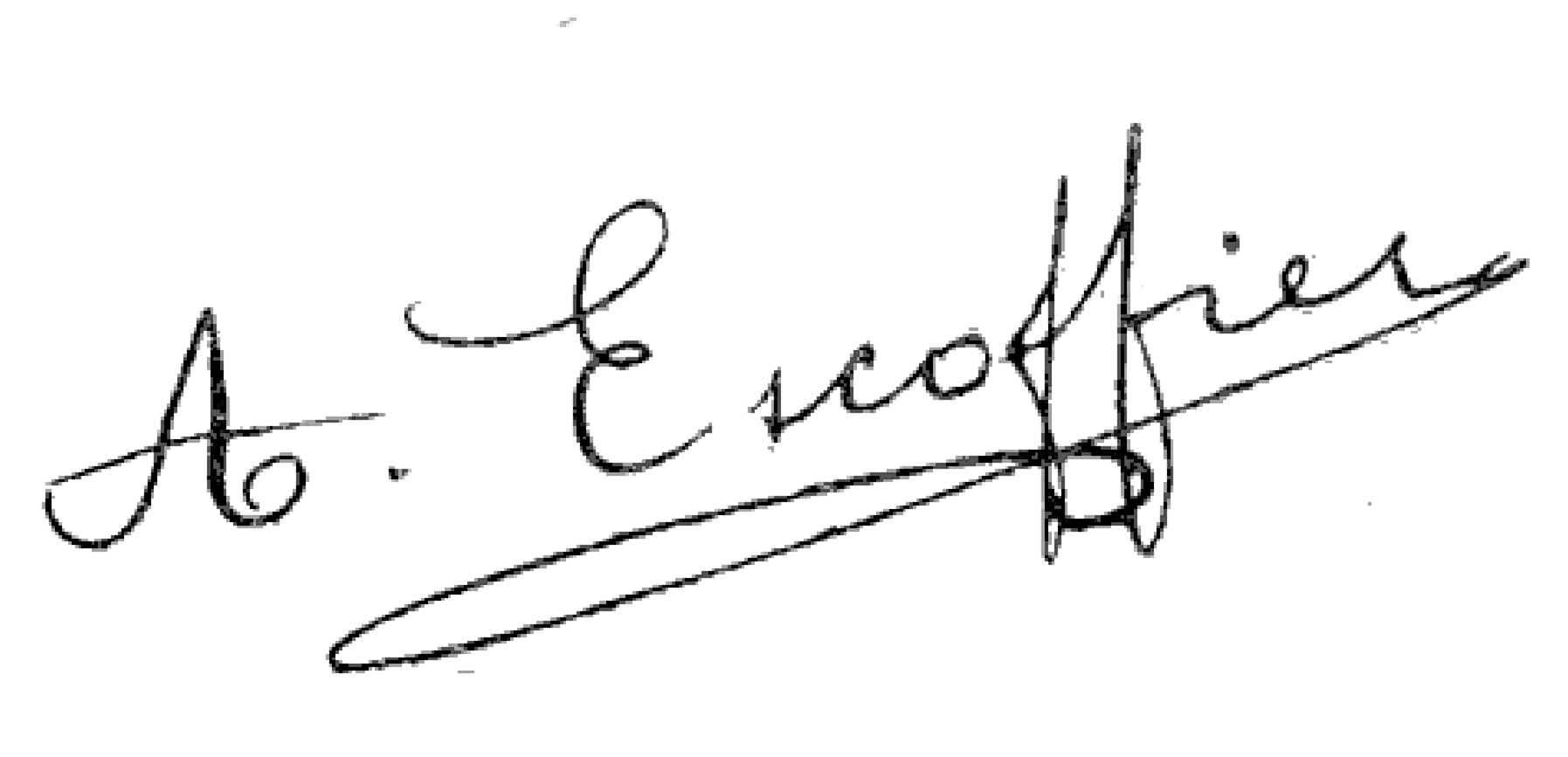 Je place ce livre sous le patronage posthume de Urbain Dubois et Émile Bernard, en témoignage de mon admiration pour ceux qui, depuis Carême, ont porté le plus haut la gloire de l'Art Culinaire.